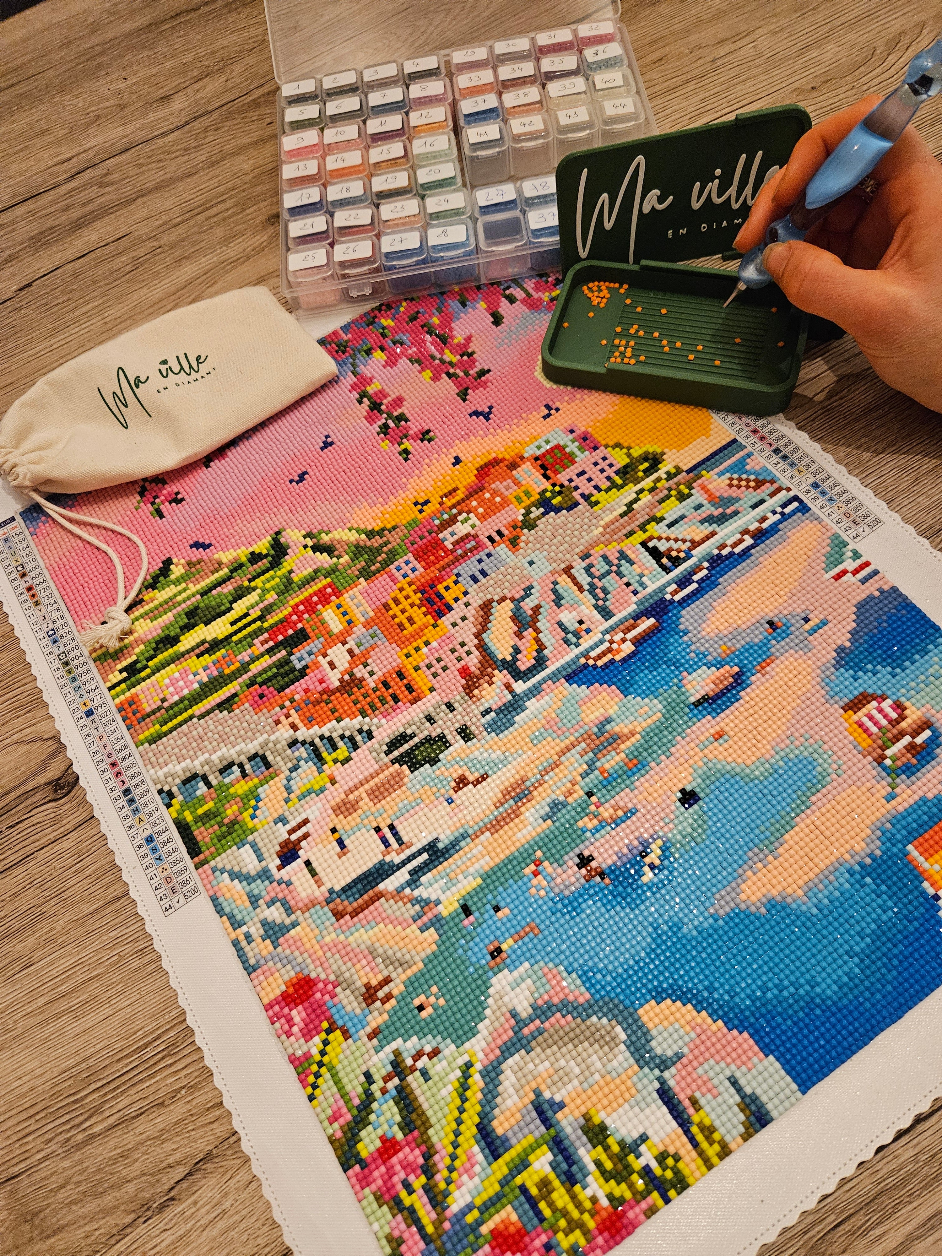 3. Que contient un kit de diamond painting Ma Ville en Diamant?